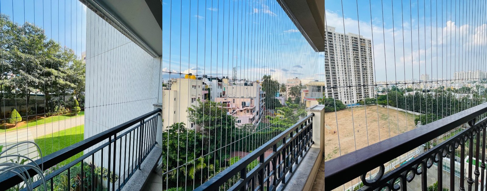 Enhance safety without compromising view with invisible grills for balconies. Durable, sleek, and secure, these grills protect children, pets, and belongings while maintaining aesthetics and allowing natural light and ventilation.
